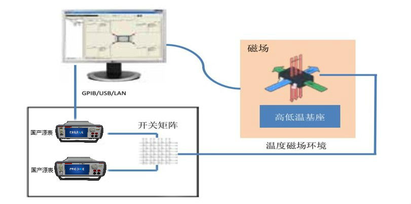 霍(huo)(huo)爾(er)定律公測系統首要是對(dui)霍(huo)(huo)爾(er)電子器件的(de) I-V 測試,再據(ju)另一個有關性能參數來確(que)定出使(shi)用的(de)值。